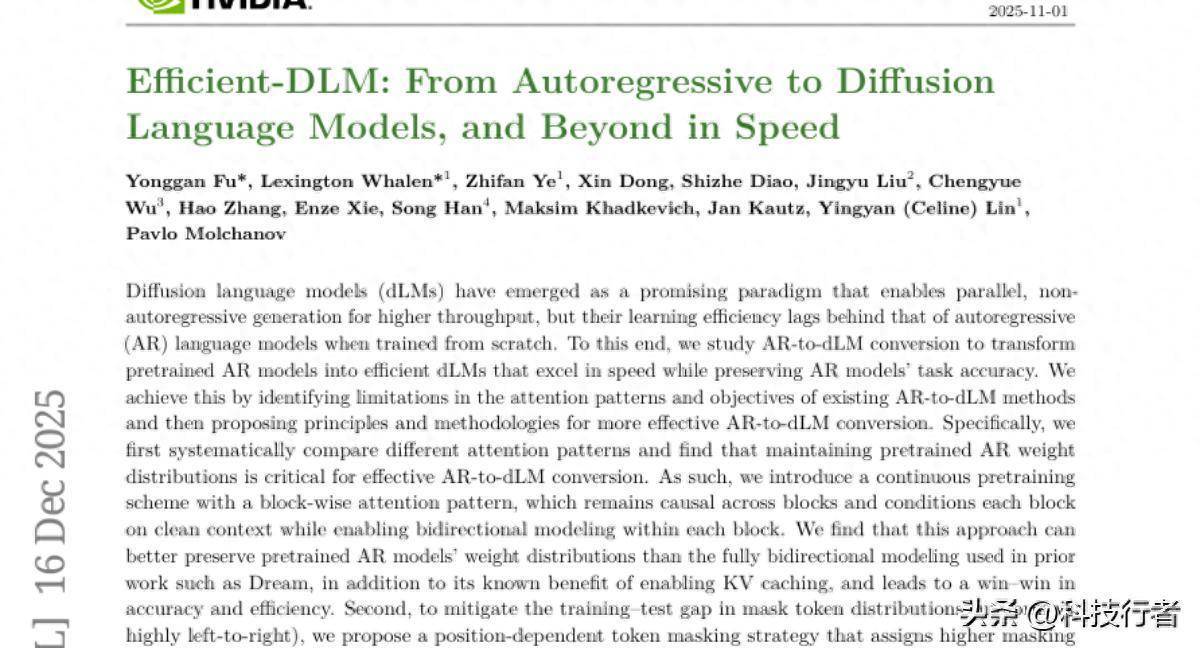 当我们使用ChatGPT或其他AI助手时,常常需要等待它一个字一个字地"思考"和输出答案。这就像一个非常博学但说话极慢的教授,虽然知识渊博,但回答问题时总是字斟句酌,让人等得心焦。传统的自回归语言模型就是这样工作的——它们必须严格按照从左到右的顺序生成每一个词,前一个词没有确定,后面的词就无法开始生成。